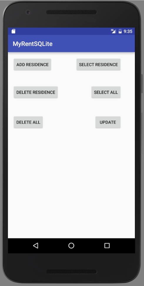 Working with a subset of the MyRent app, we develop a module to persist data using SQLite, use the Android Debug Bridge (adb) commandline tool to view the database content and as an exercise replace the file system in MyRent with an SQLite implementation.